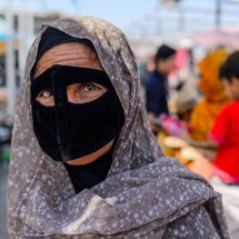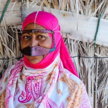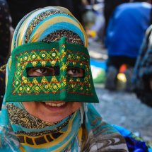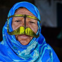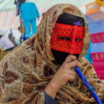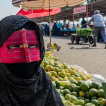 One of the reasons of my trip to Iran was to meet the masked women. I have heard that bandari (literally “people of the port”) females around the Persian Gulf wear a mask to cover the eyes and the face giving them a mysterious look. Even I had been informed that they are a close group and difficult to portray I couldn't resist to visit the place. I stayed in Qeshm, Hengam and Hormuz islands and in Minab city for the Thursday market and after a while and spending time there I got in touch with many friendly and open bandari women who explain to me about the tradition of wearing a mask. The function is double, on one side it has a religious meaning but also it is used is to get protection from the sun that is very strong in the area. They explain that local people can recognize which village the women come from or which ethnic belongs to because of the shape and the color of the masks.  Even less bandari women wear it everyday, still many of them continuos with a tradition that goes back in time for centuries.