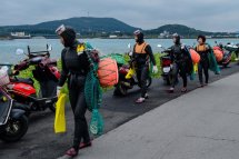 Haenyeo divers live and work on the island of Jeju, South Korea. Women who have lived from the sea for hundreds of years. They are (women) divers that go down till ten meters to collect shellfish by hand. They dive keeping the breath, without any bottles, for one or two minutes, it depends on the experience and age. Most divers are currently around 70 years old, but many of them are in their 80´s. Most have been diving for more than 50 years. A lifetime on the water. It is not an easy job, but a really hard one. They used to dive every day, but because most of them are old now, they have some days off each month. Usually they go into the water for five hours each day. Proud women who want to live by their own resources. Haenyeo divers risk their lives every day, exposed to many dangers of the sea, and suffering diseases like perpetual headaches. Many die because of the sea, but they will keep diving till their last breath. They are probably the last generation of haenyeo divers. One of the cultural treasures, in Jeju island, and in Korea.