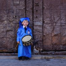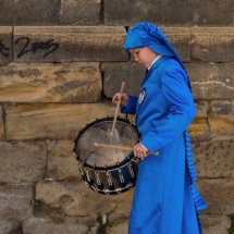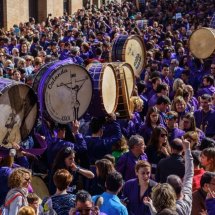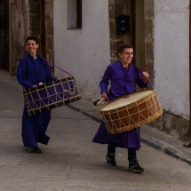 The “Ruta del Tambor y el Bombo” (“Drum and Bass Drum Route”) is an Easter celebration in nine villages of the Spanish province of Teruel: Albalate del Arzobispo, Alcañiz, Alcorisa, Andorra, Calanda, Híjar, La Puebla de Híjar, Samper de Calanda y Urrea de Gaén. On Holy Thursday (Calanda is on Friday noon) at midnight sharp hundreds of drummers start to play altogether at the same time at Town Hall Squares. This beginning of the performance is named “la Romped de la Hora” (“Breaking Time”). Each town has their own kind of drum and different colors for their tunics. The roots of the tradition probably are in some ancient ceremony, it could be from the Middle Ages, when knights of the military orders took the drum and drum bass to the region. Forgotten for many decades, Calanda drums became known through the work of his great filmmaker Luis Buñuel. However, the drums and bass drums were a sociocultural phenomenon of symbolic character in several municipalities of this territory. Sounds from the Ruta del Tambor y Bombo are the voice of a region of great values and the identity of a territory. The uninterruptedly sound of drums for hours and hours shudders and captivate those who visit any of the villages during the celebration. The best way to enjoy and understand the celebration is getting inside, take a drunk and join a group. If not, also can enjoy from outside a unique and pervasive rite with an unforgettable sound.